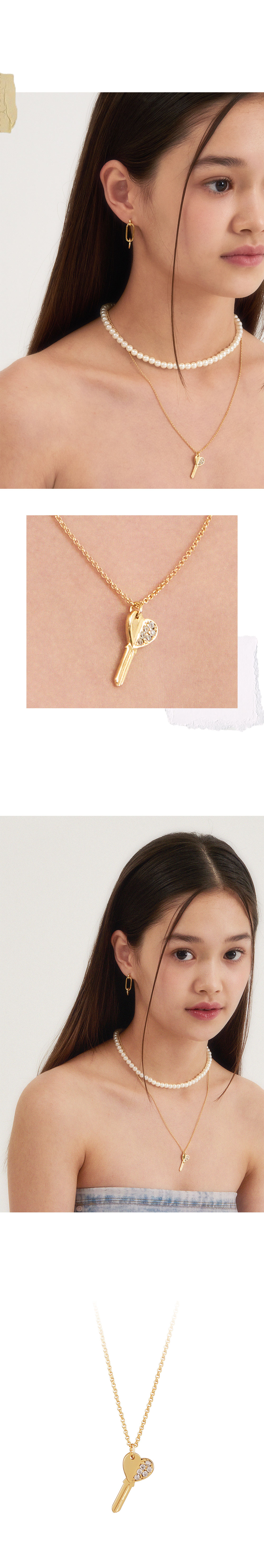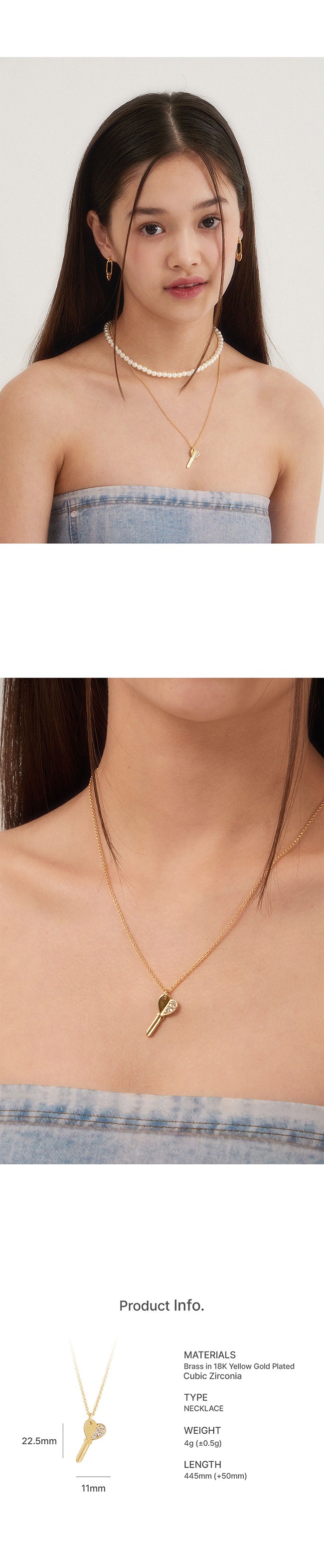 NOONOO FINGER HEART KEY NECKLACE 鑰匙 鋯石 鍍K金 項鍊 (現貨)