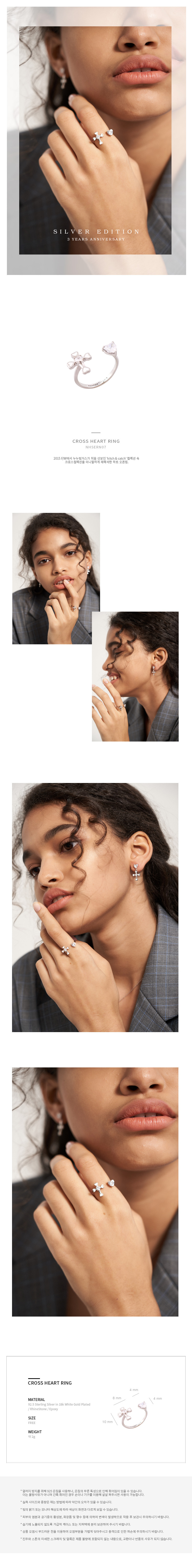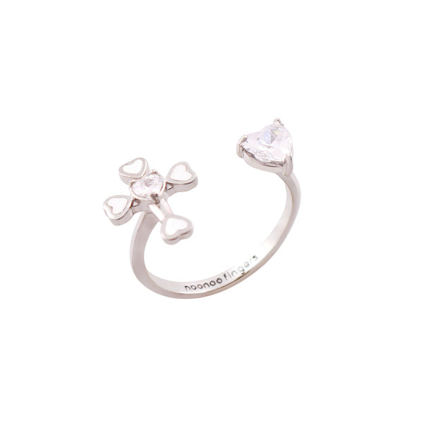 NOONOO FINGERS CROSS HEART RING 925純銀鍍白金 十字架 愛心 戒指