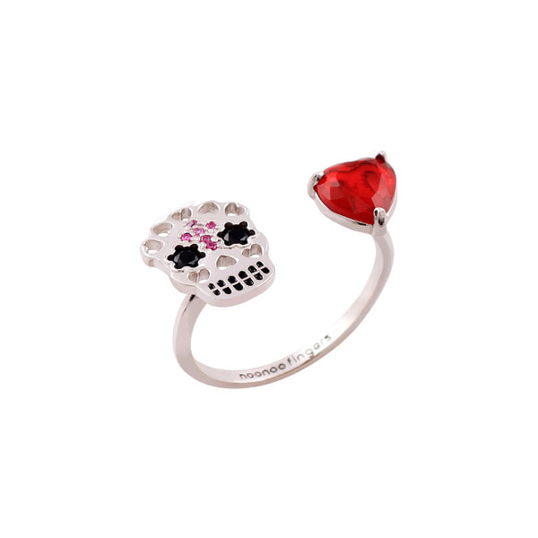 NOONOO FINGERS SKULL HEART RING 925純銀鍍白金 骷髏頭 愛心 戒指