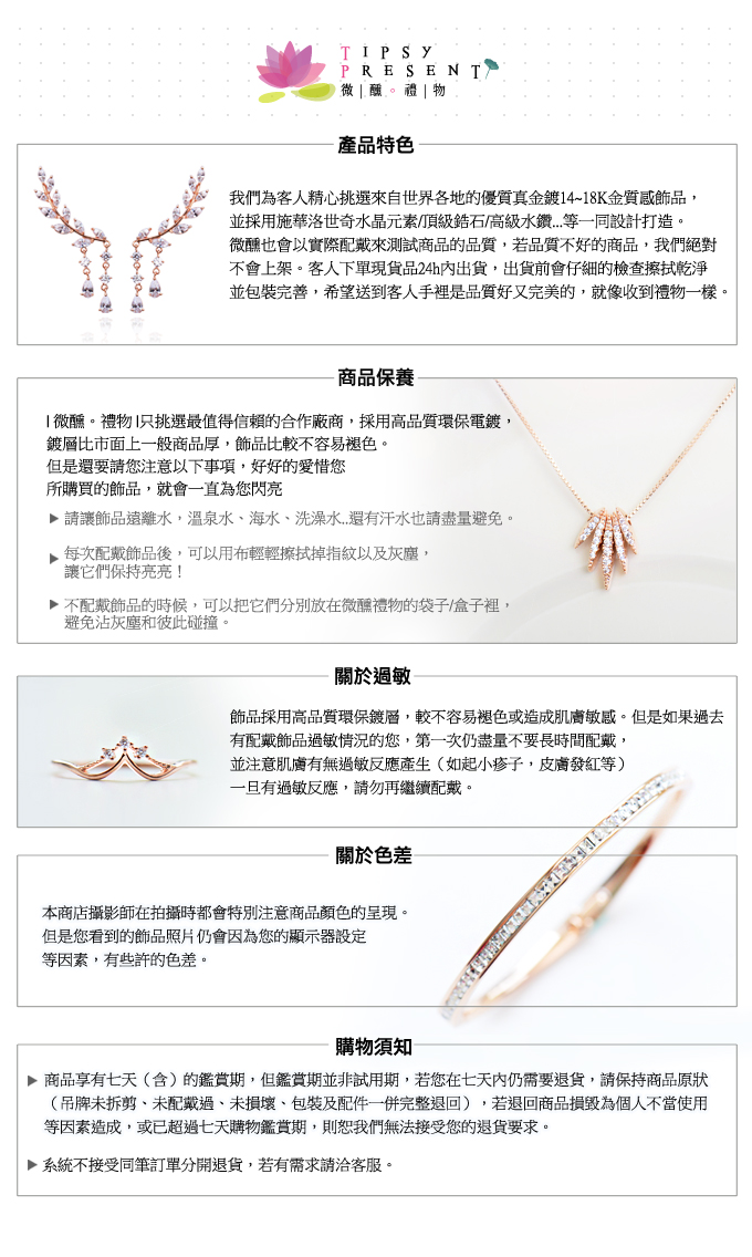 銅鍍18K金/鋯石/水鑽/聚乙烯