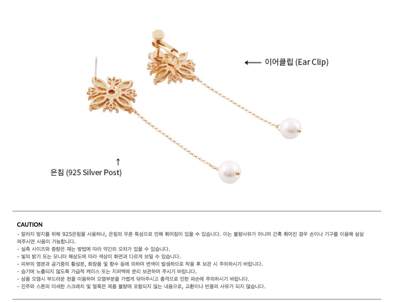 耳針材質: 925銀針
