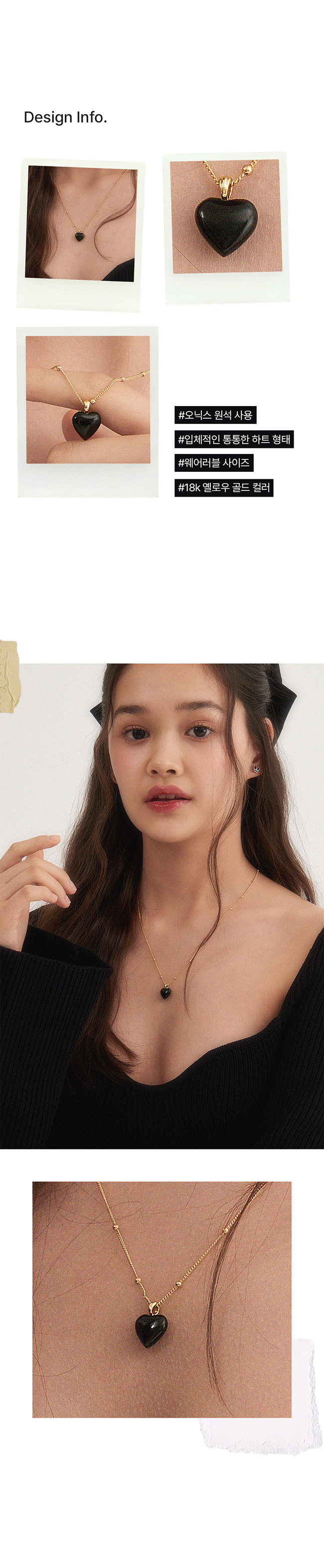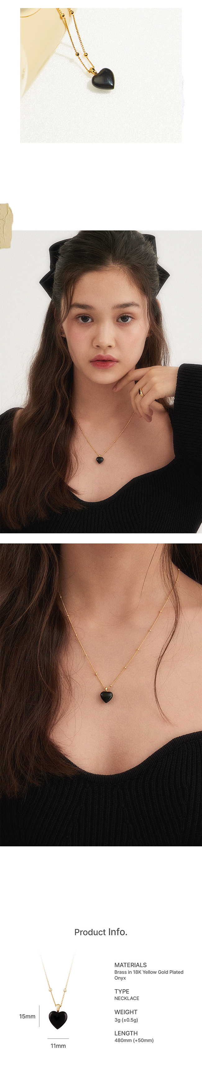 NOONOO FINGER HEART ONYX NECKLACE 黑 縞瑪瑙 愛心 項鍊 (現貨)